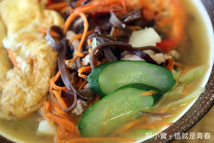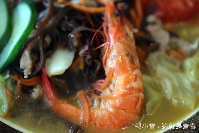 | 搶鍋麵對我來說很像是南部的什錦麵,各式各樣的小菜肉絲海鮮全部加在一起,還有我最愛的炸蛋,這樣吃起來的味道真的很棒。 |