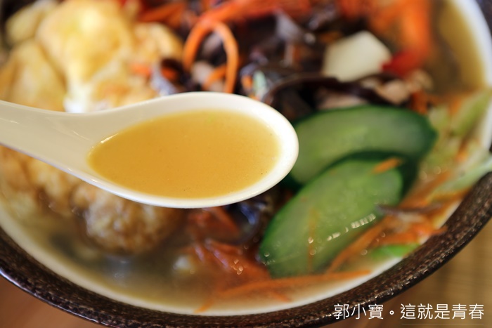 | 喝了一口湯頭果然是我超熟悉的好味道,小時後媽媽都會這樣的湯頭,但是媽媽煮的相對會油很多,店內的搶鍋麵湯頭卻是爽口不油膩,喝以來非常舒服。 |