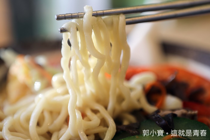| 麵條的口感也剛剛好,使用的是粗拉麵,也就是一般牛肉麵店常用的麵碼,麵條的軟硬也是我喜歡的,控制的還滿好的,咀嚼感我很喜歡,吸附著湯汁根麵條一起入口,爽度一流。 |