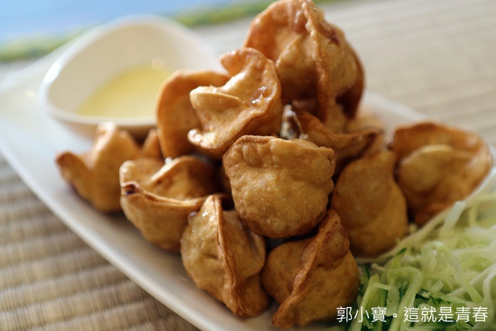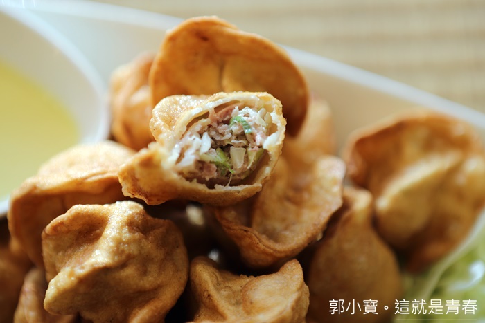 | 朋友推薦我一定要點的無敵黃金餃,炸得確實非常酥脆,熱騰騰的上桌第一口有點燙口,所以要吃之前要小心一點,餃皮炸的很好吃又沒有油耗味,內餡的部分還保有肉汁,這樣咀嚼起來的口感跟滋味真的很棒。 |