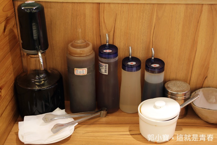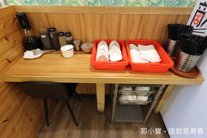 | 醬料碟跟醬料還有餐具都在餐具桌上麵,整理的也滿乾淨的。 |