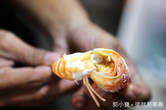 | 撥開蝦頭也可以看到蝦頭裡面滿滿的蝦膏,有的人不吃蝦頭但是有些人卻是很愛,關於蝦頭的部分我覺得因人而異,喜歡吃蝦頭的朋友千萬別錯過這美味的蝦膏。 |