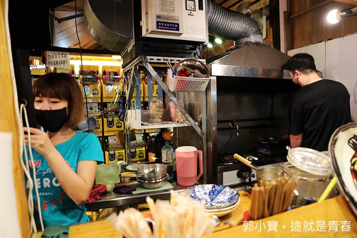 | 攤內只有兩個人,老闆似乎是負責再炒台前拼命的炒著烏龍麵,另一位女生則是負責點餐跟備料。 |