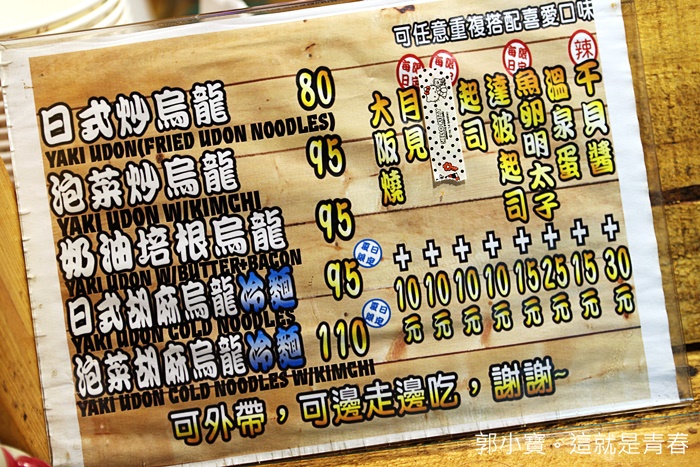 | 看了一下菜單價位還滿親民的,可以還可以加錢加配料,可以增加自己喜歡的食材,當初看到的可以加起司,老實說我真的很難想像烏龍麵搭配起司的味道,第一次吃還是點一些比較正常的口味好了XD |