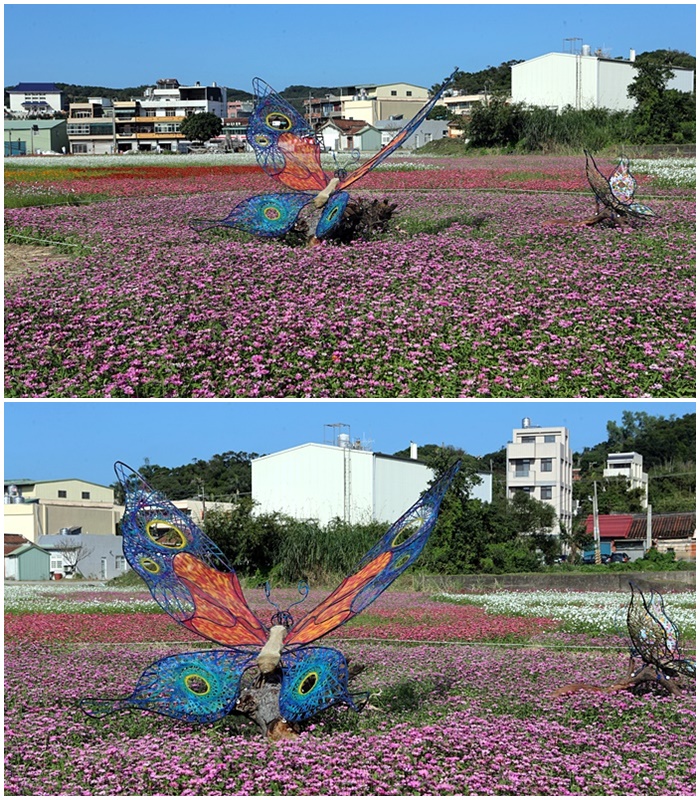 | 在花海裡面翩翩起舞的超大蝴蝶,蝴蝶的藝術造景也超吸睛的,這次每一個園區的工作人員都非常用心,直到最後的階段還是很努力地想讓每個園區都變得更好。 |