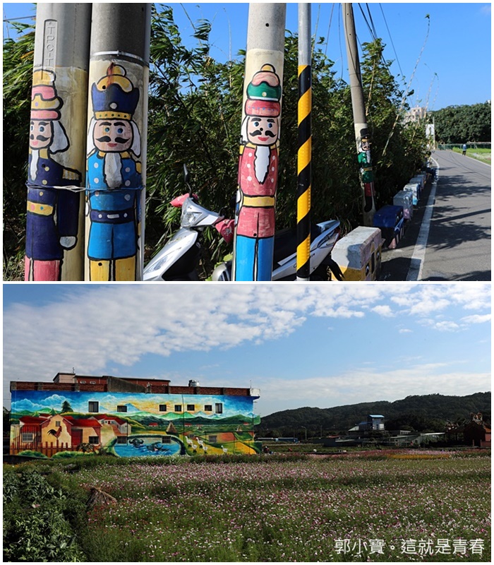 | 連電線桿都耍上小心機彩繪上衛兵站崗,還有遠方的房子彩繪搭配藍天白雲還有花海,真的讓人感覺到幸福的泡泡!!! |