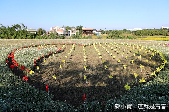 | 花海中堅的風車愛心,當風吹起的時候不只花朵隨風飄逸,連風車也一起轉個不停。 |