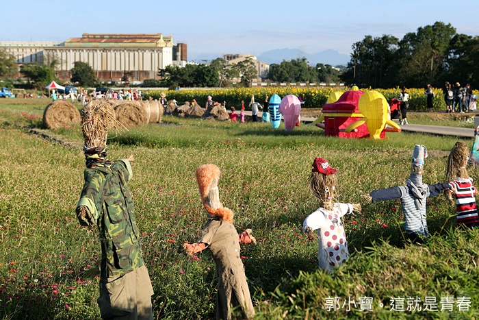 | 一路走過來看到稻草人就是主展區了,一整排上百個稻草人真的好可愛,除了花海以外這邊也是主要的會場,還有有音樂會表演,也是遊客主要逗留的區域。 |