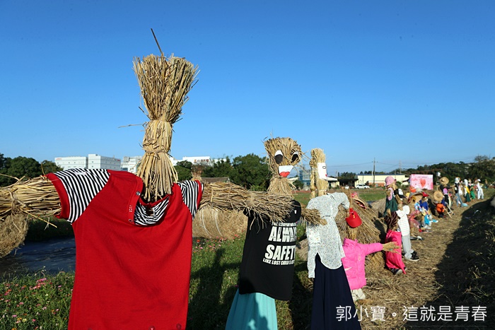 | 各式各樣的稻田藝術裝置都很吸睛也很好拍,這邊的活動非常多,有的稻草人工作人員還幫她穿上鞋子真的很可愛,大大小小的稻草人一路排列過去還滿壯觀的。 |