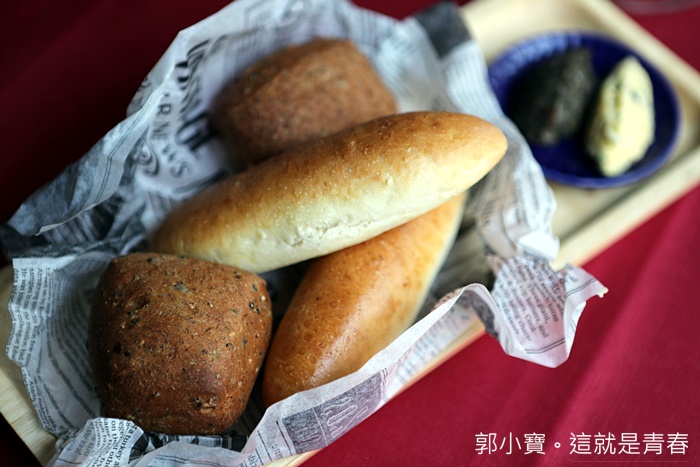 | 麵包準備的歐式麵包,但是重點就在主廚的巴特,我老婆超愛主廚做的巴特,瞬間被挖光,歐式麵包的口感也都很不錯。 |