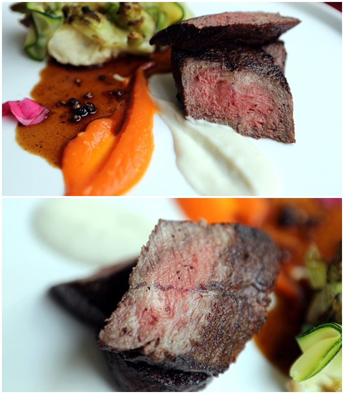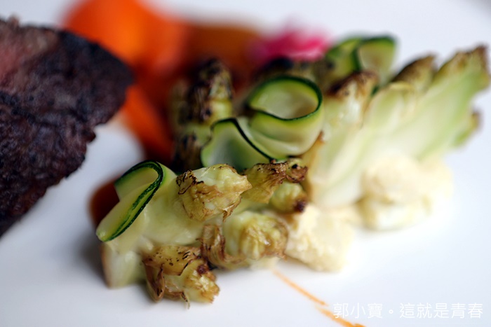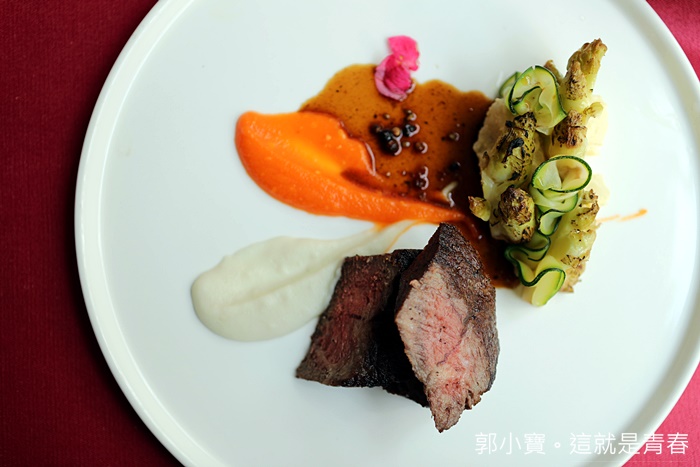 | 這被譽為最接近日本和牛血頭的巧克力和牛從小就被餵養巧克力、小熊軟糖、草莓等甜食的牛隻肌紋生出油花,味道異常的鮮美,主廚料理的功夫剛好生熟半分不見血,本來我以為過熟,但是入口後那軟嫩的口感一整個恰恰好以外,巧克力和牛深層的焦糖香氣真的淡淡的散發出來,讓人一整個愛到不行。 |