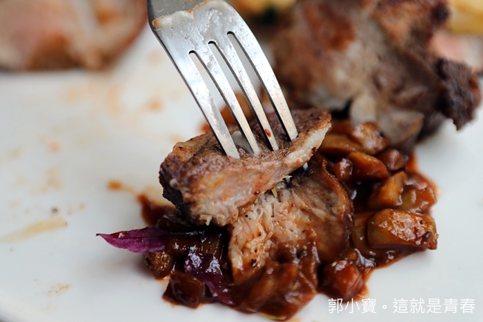| 如果讓我選擇台灣美味的豬肉的話,那我心裡面就是葛瑪蘭豬跟伊比利豬了,伊比利豬號稱豬界的勞斯勞斯,這兩年的知名度非常響亮,伊比利豬是少數可以不用做全熟的豬肉,給的份量也頗多,淋上主廚特製的小茴香蘋果醬汁,香氣帶點甜膩味非常舒服。 |