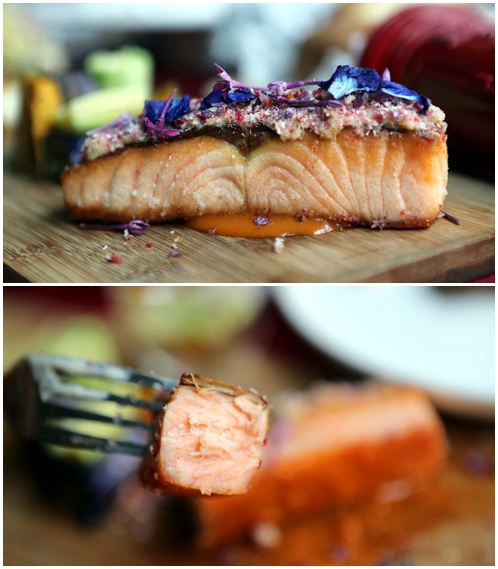 | 鮭魚燒烤的熟度剛剛好,沒有過多的油脂,可以盡情享受龜魚的肉質口感,一口咬下那紮實的魚肉,咀嚼著特有鮭魚的滋味真的超級過癮。 |