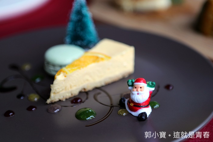 | 這次的蛋糕我異常覺得很好吃,水果風味的輕乳酪蛋糕非常夠水準,而且盤飾非常有聖誕氣氛,聖誕樹跟聖誕老公公都出現了XD |