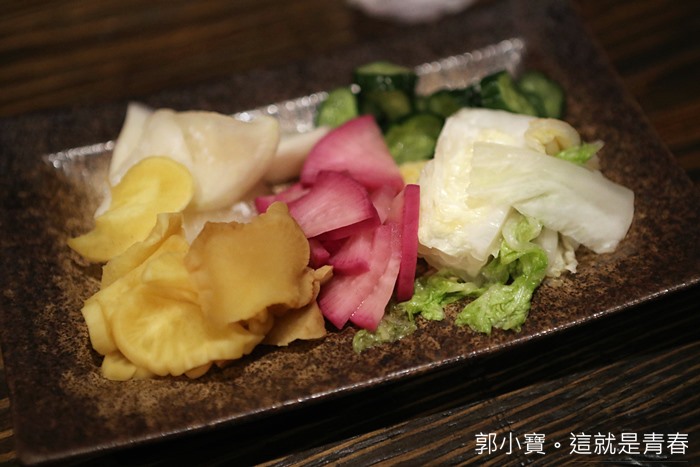 | 一就定位後工作人員就端上小菜,醃漬菜都還滿好吃的,爽口開胃! |