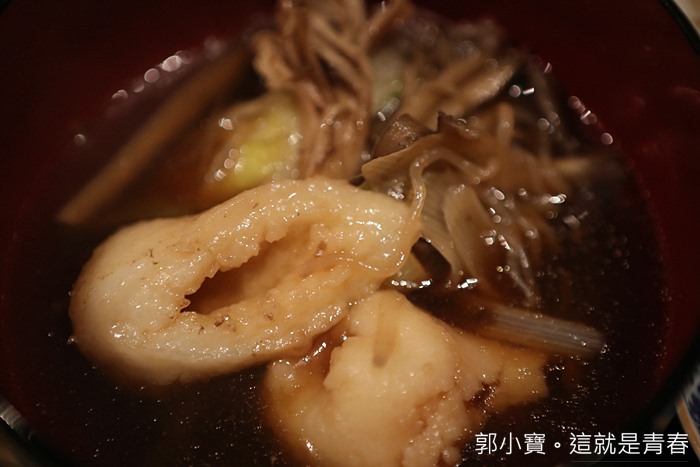 | 打開一看才知道原來是秋田第一名物米棒鍋,來到秋田就是要吃米棒鍋,每家店都有自己特製的米棒鍋,這家店的調味當然也有自己的風格,除了米棒後還有其他的食材。 |