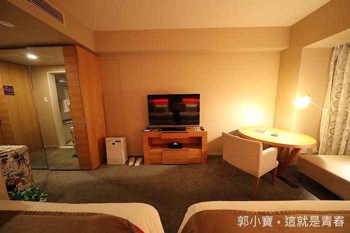 | 床鋪的對面則是電視櫃,整體的規劃算是相當不錯的,且這樣的房間在其他大城市的價格絕不可能像在秋田那麼划算,所以來秋田旅遊也是CP值滿高的。 |