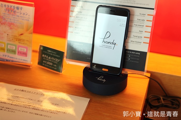 | 床頭櫃旁則有手機型的無線網路分享,內建一些周遭的美食餐廳。 |
