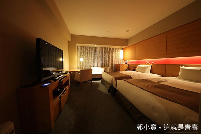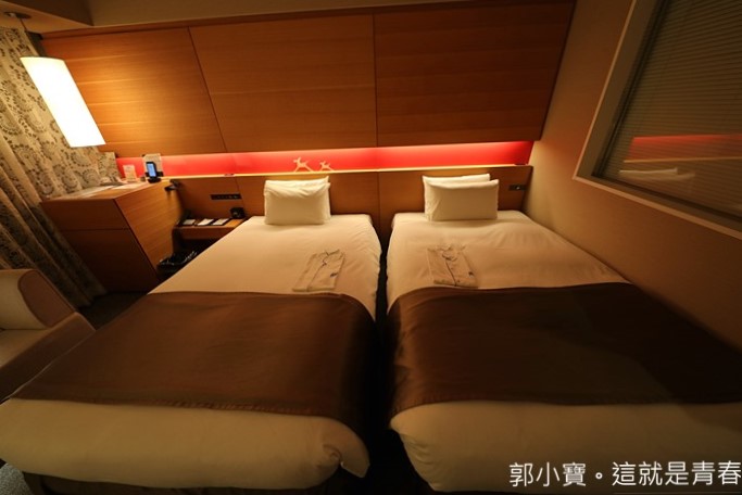 | 這次的房間是兩張單人床的大房,整體的氛圍營造的很好,比起一般的商務旅館更加有度假感,窗外的景色則是可以直接看到車站外的市景,枕頭都備有兩顆。 |