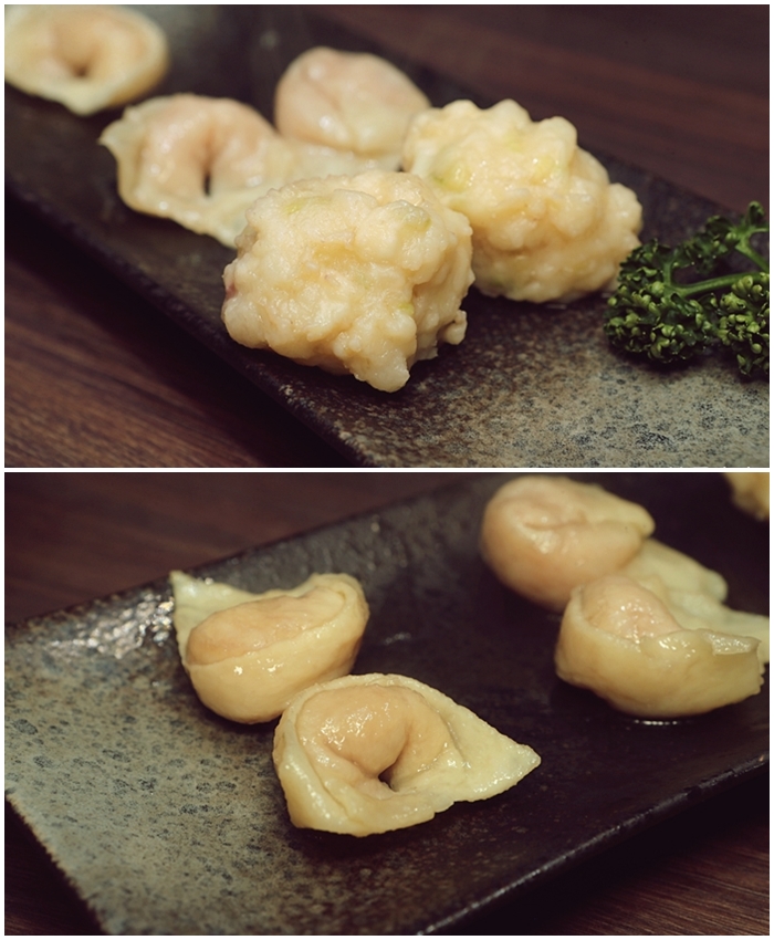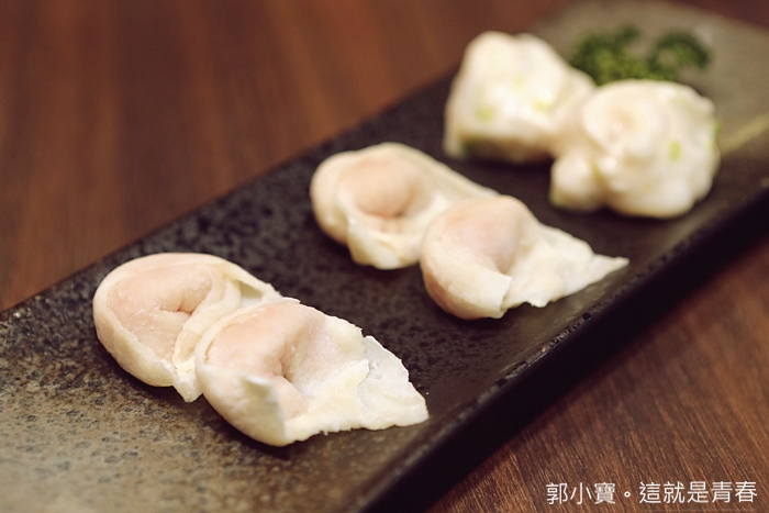 | 套餐也含有特製的手工餃類拼盤,除了每一口都咬到的花枝的花枝丸以外,魚餃跟燕餃也都很強,尤其是餃皮的部分真的不輸給新竹與基隆老店,爽度破表。 |