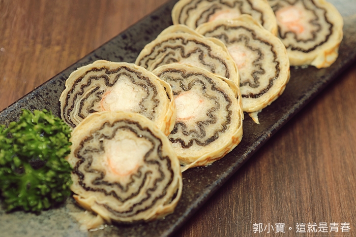 | 店內人員可能聽到我以前就是高雄店的常客,所以就招待了我們幾款商品,這虎皮蝦捲也是她們家的招牌,蛋皮裹著紫菜還有蝦肉的虎皮蝦捲真的物如其名,吃起來的味蕾層次豐富度非常的高,極推薦的一款火鍋料。 |
