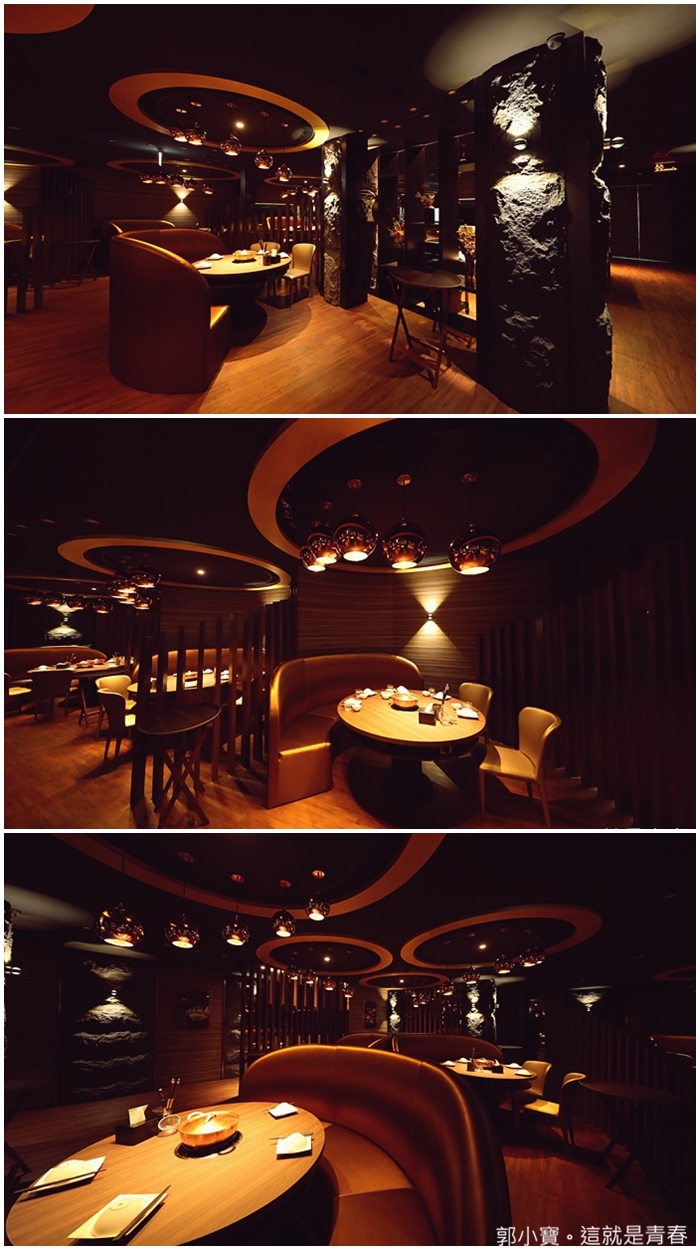 | 銅花精緻涮涮鍋的座位區也是沿襲著高雄總店的裝潢,超美的用餐空間跟氛圍非常舒適,每個用餐空間都很寬敞,有點像是半開放式的包廂座位,銅花也有提供幾間隱密包廂,少見裝潢很用心的涮涮鍋店。 |