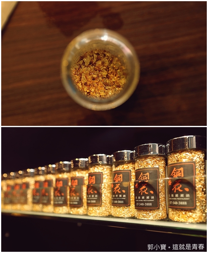 | 真的一整瓶的金箔灑的滿滿的,櫃台也有販售一整瓶的金箔。 |