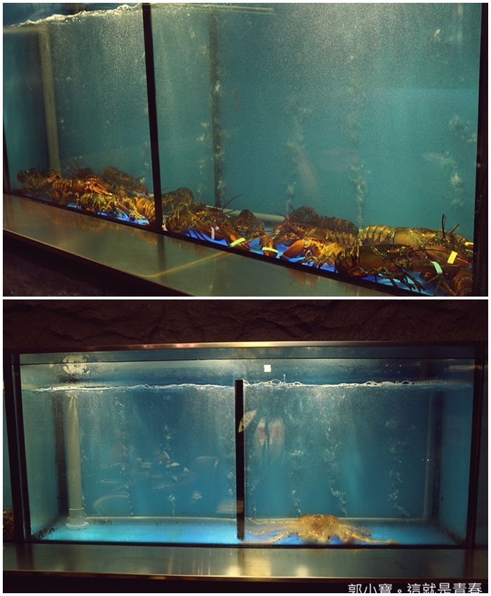 | 特別的是銅花精緻涮涮鍋的部分海鮮都是堅持使用活體,帝王蟹跟龍蝦都可以看到一旁的水族箱內活跳跳的非常新鮮,這類型的海鮮就是要吃活體才美味!! |