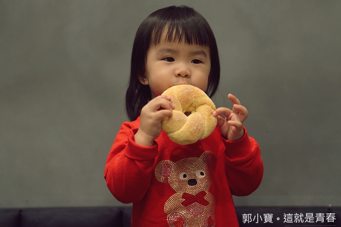 | 用烤的甜甜圈感覺滿有趣的,所以就買了一顆給女兒當晚上的宵夜,感覺用烤的甜甜圈負擔比較不會那麼大,女兒也滿喜歡的。 |