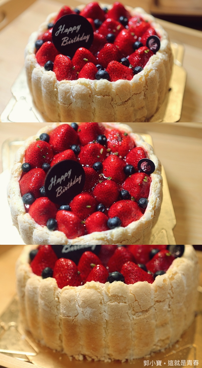 當天最吸引我的生日蛋糕,因為最近我的生日也快接近了,我通常就是自己的生日蛋糕自己買的那種,會吸引我的原因主要是因為除了上面佈滿草莓以外,蛋糕體本身就是手指松表的派皮很吸引人。 |