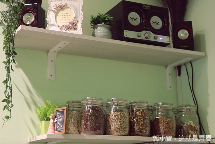 | 沒有過多的裝飾物,尤其整間店面都粉沙淡綠色,貼近店名小草的色系,也符合素食的感覺。 |