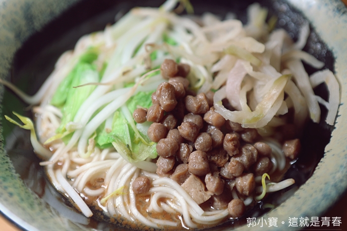 | 紅燒湯頭可以搭片很多麵條,但是我老婆很喜歡吃米苔目,而且一定要純米的那種米苔目,吃起來有點軟爛的那種,配料非常豐富。 |
