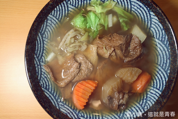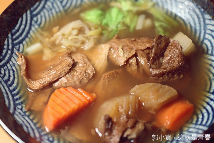 | 湯頭喝起來滿溫潤的,帶點淡淡紅燒的味道,很順口的紅燒湯頭。 |