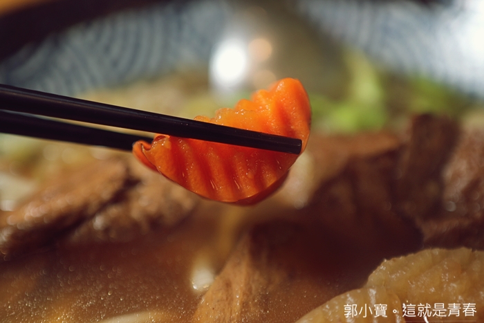 | 裡面有大量的切塊蔬菜,紅蘿蔔跟白蘿蔔,燉煮的夠軟爛。 |