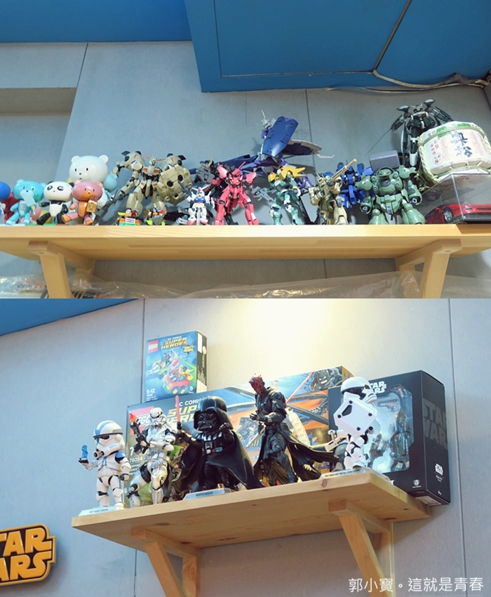 | 老闆跟我一樣似乎是個公仔控,收集很多鋼彈跟星際大戰的公仔,店裡這邊應該看起來是老闆的一小部分XDD |