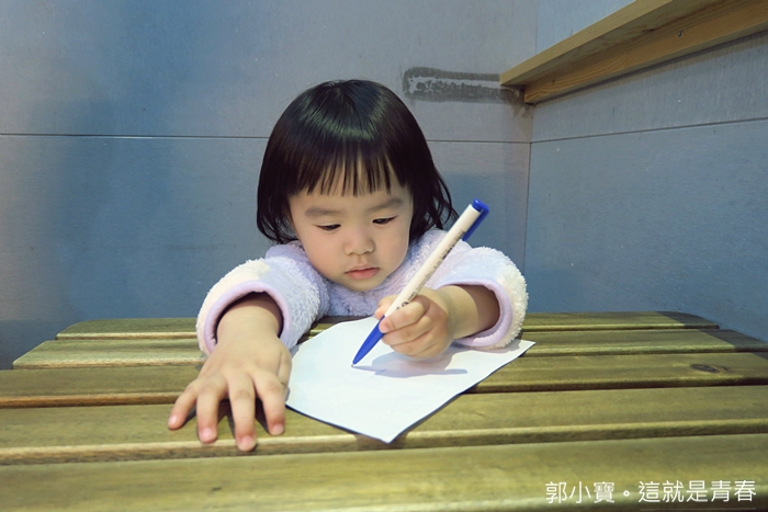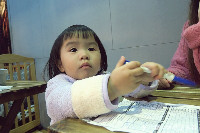 | 店家似乎滿親近小朋友的,看到小孩子拿到筆就想畫畫,所以趕緊拿一張紙來給嬰皇作畫。 |