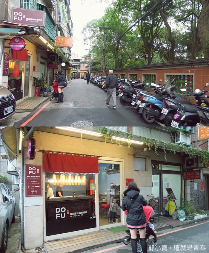 | 進到小巷後第一間看到的小店就是DOFU多福韓式風味鍋專門店,因為每天都會經過聞到她飄散出來的香味,有時候人潮很多有時候還好,不過熊貓的機車卻是常常接這邊的單子,因為觀望滿久的所以就直接來試試看了。 |