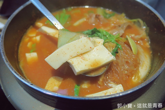 | 先喝一口湯頭,是我喜歡的大醬湯的味道,說真的,我個人很喜歡韓國大醬湯的湯頭,喝一口湯配一口白飯就覺得很滿足,我在台北喝過很多家都覺得少了那麼一點點味道,但是多福的真的很合我的胃口。 |