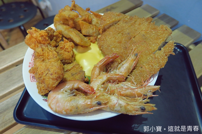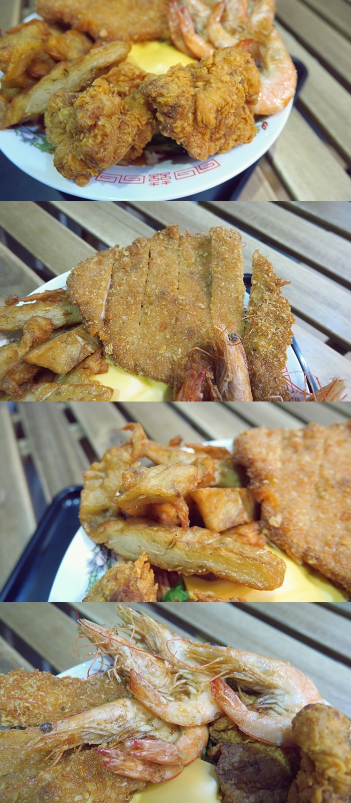 | 這些食材也可以分別單點,但是這一晚澎派丼我很喜歡,當天我真的吃光光一整個飽到天靈蓋,有炸豬排、炸蝦、炸牛蒡天婦羅跟炸雞。 |