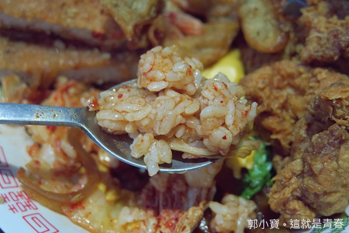 | 我很喜歡它們裡面的泡菜飯,他們的泡菜帶點甜滿適合台灣人的口味,米飯因為泡菜的關係吃起來偏濕潤,是我喜歡的,感覺就像喝一口湯吃一口飯的感覺,非常順口,很滿足的一碗極限澎派丼。 |