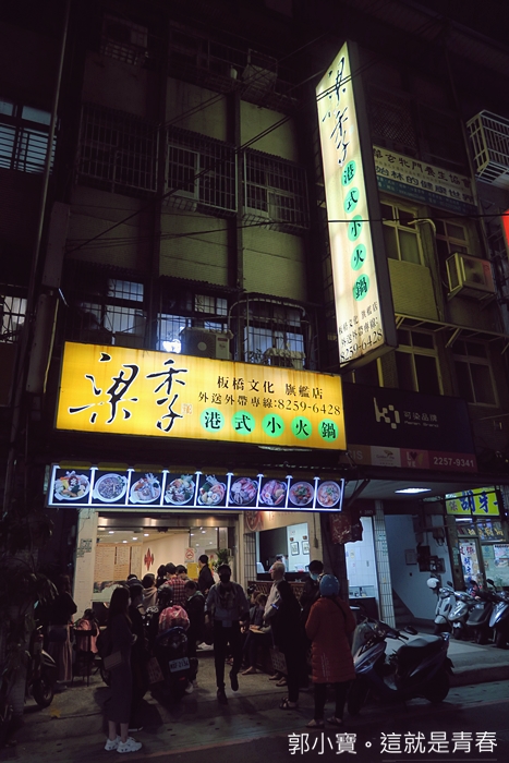 | 對於我家太妃這個超級愛吃鍋的人來說,她的希望就是每天有一餐都可以吃火鍋,目前她的最愛就是我們江子翠家門口附近的錢都涮涮鍋,我搬來這裡以前真的不知道錢都可以排成這個樣子,某次打卡的時候有幾個網友推薦我這一家板橋在地的梁記港式小火鍋,瞬間引起我們一家的好奇,看了一下很多人的分享,確實都是好評不斷,所以找了一天晚上我們就騎著摩托車趕來了,梁記小火鍋就在油庫口麵線同條路上,現場真的超級多人的,而且我們到達的時間是晚上八點還這麼多人。 |