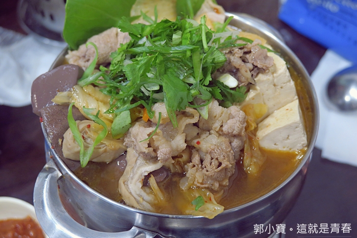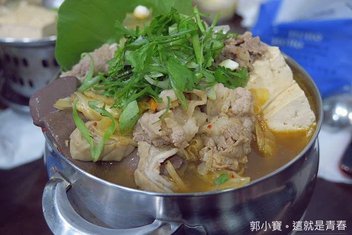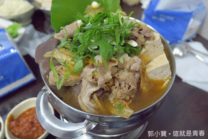 | 梁記的肉片還不錯,不會太乾柴,泡菜鍋的鴨血也不錯。 |
