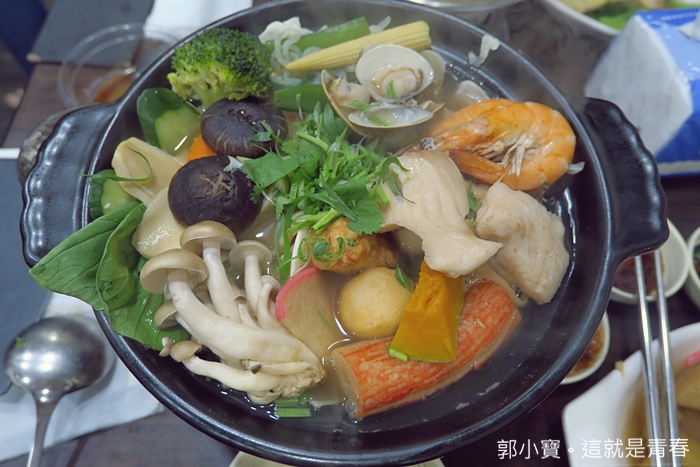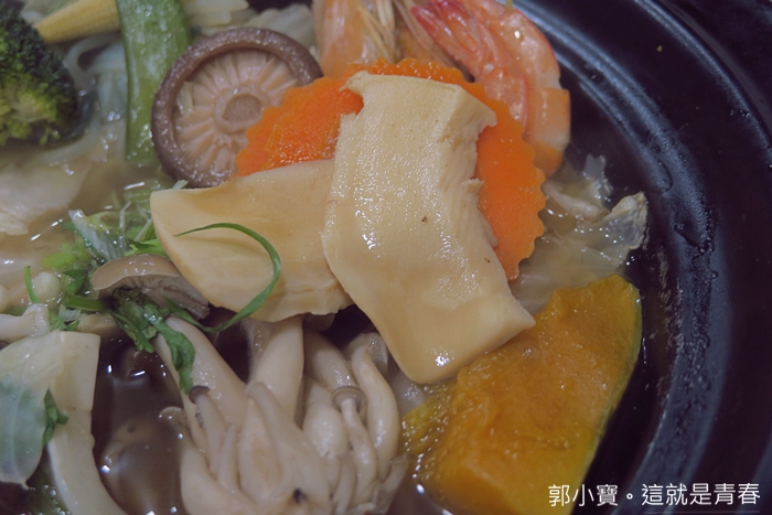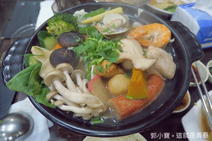| 海鮮鍋是用砂鍋裝盛,滿滿的食材看起來真的非常有誠意,這一鍋這個價位我真的覺得很划算,而且蔬菜真的很多,多道我有一點吃不完,我跟太妃也算愛吃蔬菜的人,但是當天真的點的東西有點剩下來。 |