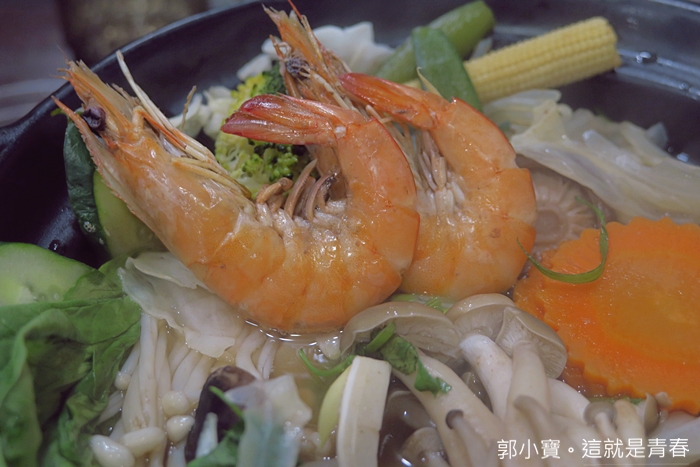 | 海鮮鍋給的海鮮食材也都不錯,蝦子是白蝦,鮑魚片還算厚,當天沒有看到花枝本人,因為菜單上寫有花枝,但是我記憶中真的沒有撈到花枝,不知道是不是我記錯還是遺漏掉,但是不得不說一下,熬煮完後的湯頭喝起來真的很鮮甜,每一口都甜滋滋的那種,難怪可以那麼受歡迎,大概是我目前吃過平價小火鍋裡面湯頭最好喝的。 |