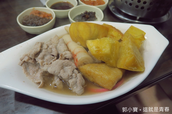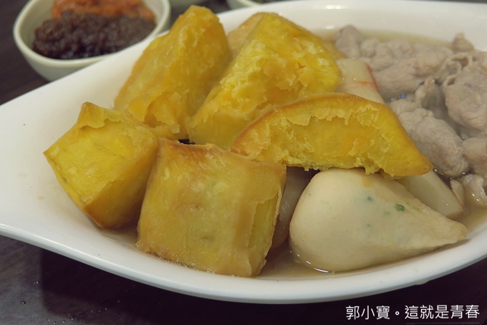 | 因為本來以為會吃不飽,所以我們還有另外加點一些肉片跟火鍋料,太妃欽點的地瓜,服務人員會詢問直接放入鍋內還是像這樣另外裝盤。 |