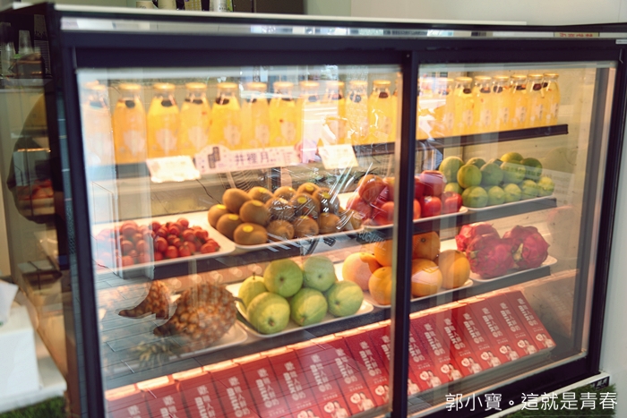 | 冷藏冰櫃也整理得很乾淨。裡面放的都是新鮮的水果,布里亞厚是一家標榜新鮮水果為主的果飲店,很多都是跟宜蘭當地的果農配合,除非宜蘭沒有種的老闆才會往其他產地找。 |