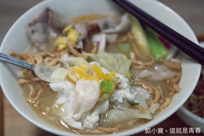 | 將沙茶拌入後再喝一口湯頭,滿滿鍋燒麵的香氣,爐氣有出來頗為步錯,湯頭也算有達到水準。 |