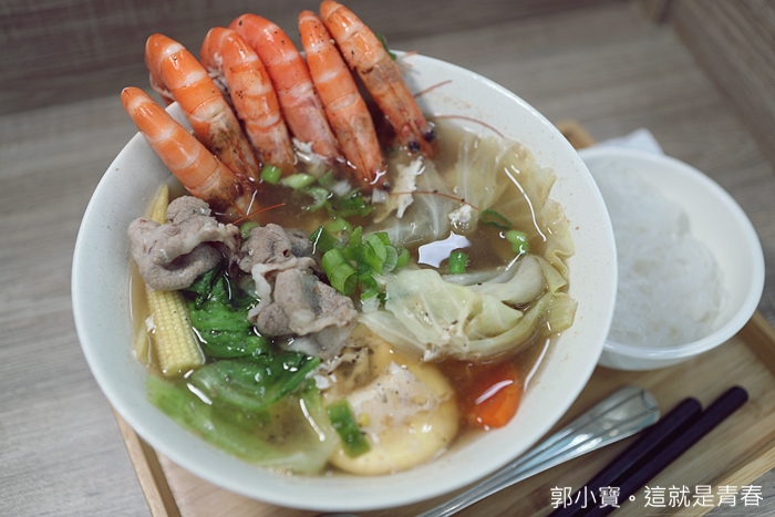 | 黑胡椒蝦蝦鍋也是很多人推薦的品項,除了一整排的蝦子以外,基本鍋燒麵的配料跟食材也都有。 |