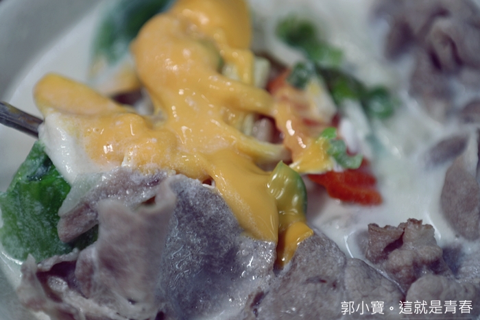 | 加了一片起司的牛奶湯頭喝起來真的很鮮奶,不是奶粉的那種味道,就是鮮乳的感覺,搭配上起司的鹹度跟香氣,所以一整個就是超級順口的阿,而且喝起來不會有沙沙的口感,這是我喝過最厲害的牛奶湯頭,真的超強,果然有肯啃鮮乳的背景真的就是不一樣。 |