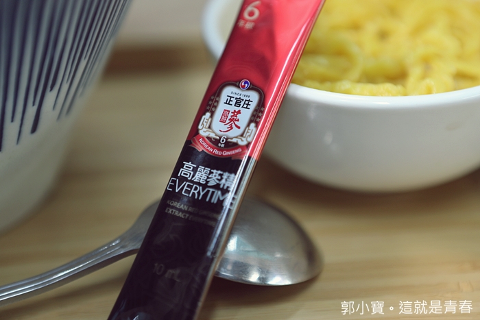 | 加上高麗篸精後我還滿期待它的味道會變得怎樣,我稍微喝了一小口的高麗篸精,苦味暪明顯了,但是為了身體好沒辦法啊XDDD |